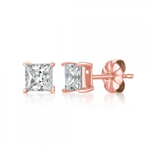 Crislu 18KT Rose Gold Plated Sterling Silver Cubic Zirconia Safety Clasp In & Out Hoop Earrings