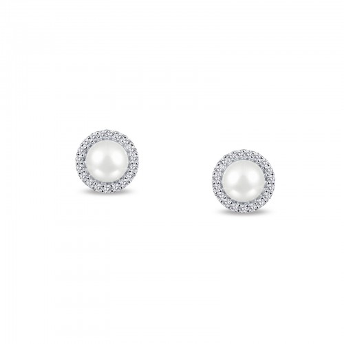 Diamonfire Clear Cubic Zirconia White Shell Pearl Contemporary Princess Cut Earrings E6722