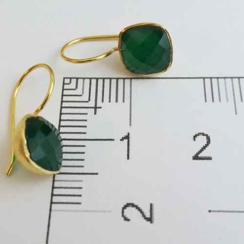 Cushion Cut Natural Green Onyx Gold Plated Sterling Silver Drop Dangle Earrings – Handmade Gemstone Jewelry Gift Ideas for Women (Green Onyx)