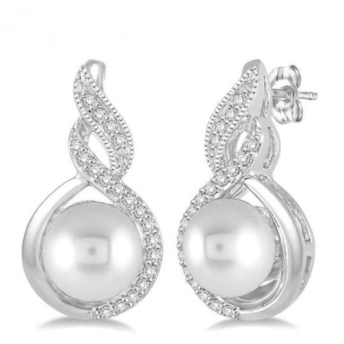Diamonfire Clear Cubic Zirconia White Shell Pearl Contemporary Princess Cut Earrings E6722