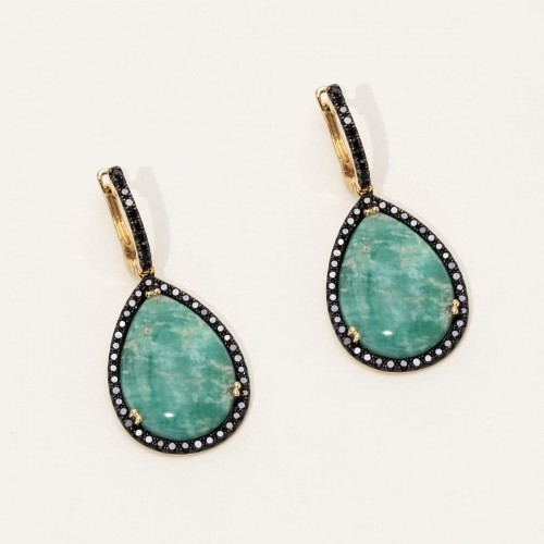 Dabakarov Pink Opal Drop Earrings in 14kt Yellow Gold with Diamonds (1/3ct tw) CSER00678