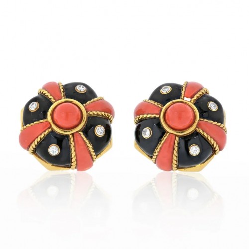 David Webb 18K Yellow Gold 1970’s Angel Skin Coral Twisted Rope Round Button Earrings