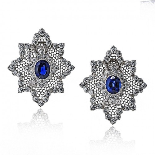David Webb Platinum & 18K Yellow Gold Green Chrysoprase Diamond Earrings