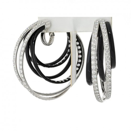 De Grisogono 18K White Gold Black Diamond Hoop Earrings