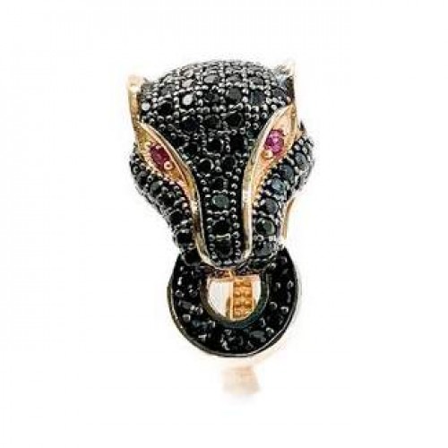 Designer GULAYLAR 14K Rose Gold Black Diamond And Ruby Panther/Leopard Head Earring