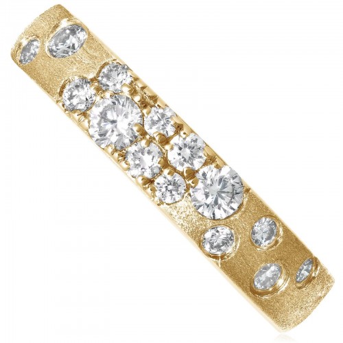 14K yellow gold diamond Confetti narrow huggie hoops featuring round brilliant cut diamonds weighing 0.42 ctw. Designed by Dilamani.
