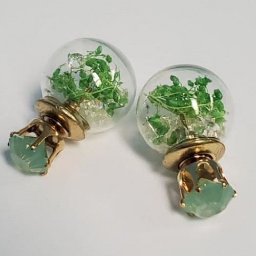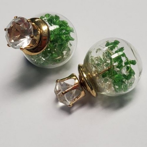 *E1029 Gold Rhinestone Gem Orange Vine Filled Ball Earrings