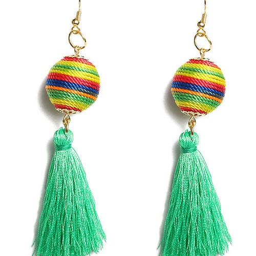 E1144 Silver Red Gem Multi Color Tassel Earrings