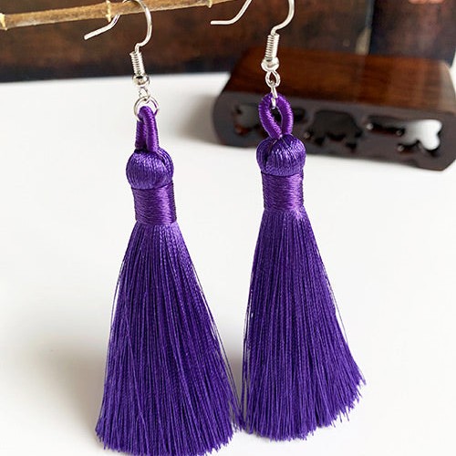 E136 Sage Green Long Tassel Earrings