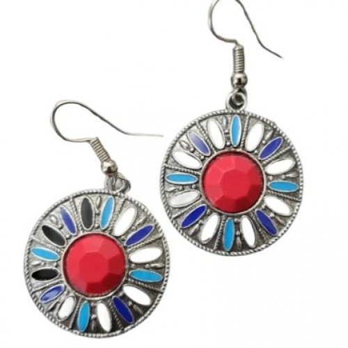 E571 Silver Soccer Mom Gemstone Dangle Earrings