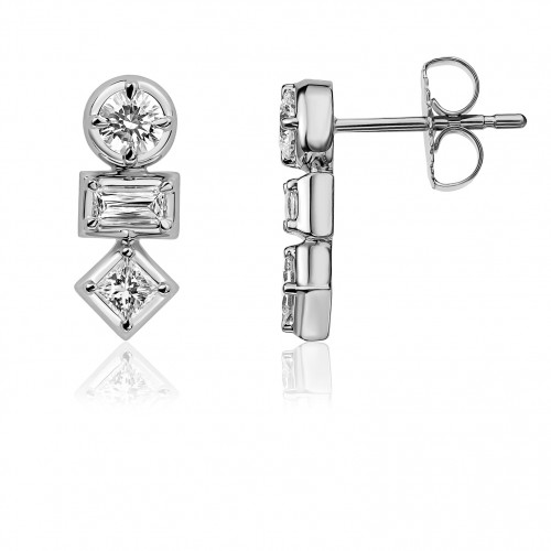 Diamonfire Clear Cubic Zirconia White Shell Pearl Contemporary Princess Cut Earrings E6722