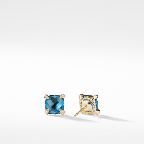 18-karat yellow gold • Faceted Hampton Blue Topaz, Pave diamonds, 0.06 total carat weight • Earrings, 8x8mm