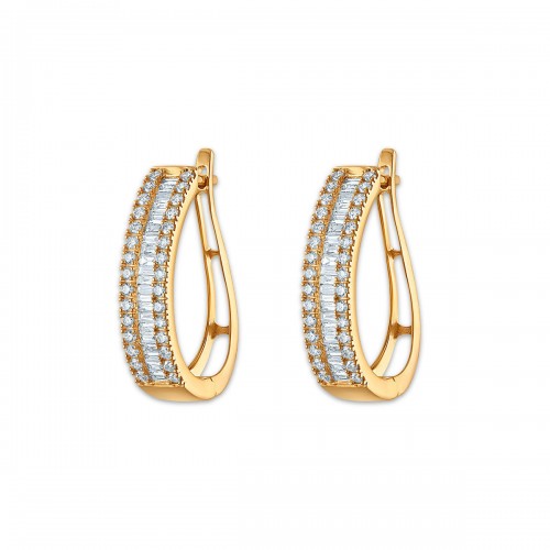 EcoLove 1 CTW Lab Grown Diamond Hoop Earrings in 10KT Yellow Gold with Round and Baguette Cut Stones