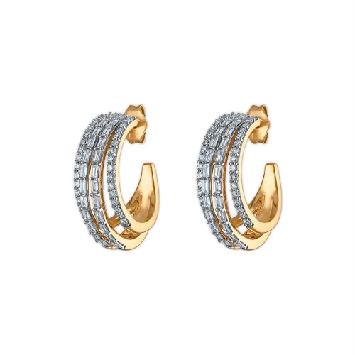 EcoLove 1 CTW Round & Baguette Lab Grown Diamond Half Hoop Earrings in Gold Plated Sterling Silver