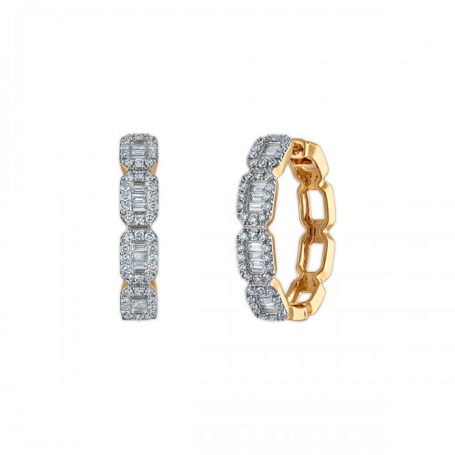 EcoLove 1 CTW Round & Baguette Lab Grown Diamond Hoop Earrings in Rhodium Plated Sterling Silver