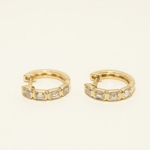 Emerald Cut Diamond Bezel Hoop Earrings in 14kt Yellow Gold (7/8ct tw) DEAR01046