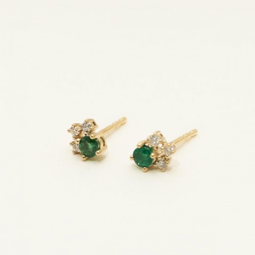 Emerald Stud Earrings in 14kt Yellow Gold with Diamonds (1/10ct tw) CSER00689