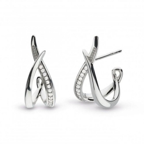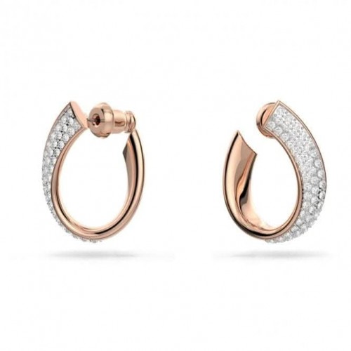 Designed with a unique front-to-back silhouette, these hoop earrings feature a ribbon design that wraps around the earlobe to showcase rose gold-tone plating on one side and clear crystal pavé on the other. Exuding a subtle sophistication, they are a versatile choice.