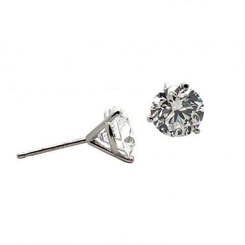 One Pair Of 14 Karat White Gold Diamond Stud Earrings Containing Round Brilliant Cut Diamonds Weighing 0.28 Carats Total, G-H In Color, Si In Clarity. The Earrings Have Friction Posts And Backs.