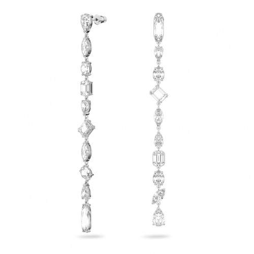 Swarovski Gema Drop Asymmetric Design Long White Rhodium Plated Earrings 5639328