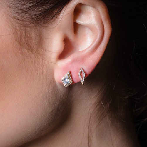 | The Shield Earrings by Georgini is are an innovative and contemporary take on the famous symbol for protection. Featuring a new cut shield stone sourced specifically for this collection, this modern amulet shines bright. Crafted in 18ct Gold Plated 925 Sterling Silver these earrings measure approximately 11.64 mm long. |