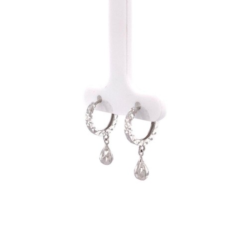 18K White Gold Diamond Cut Dangling Earrings