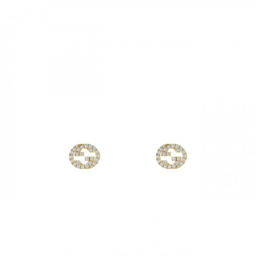Gucci Interlocking Stud Earrings with Diamonds in Yellow Gold