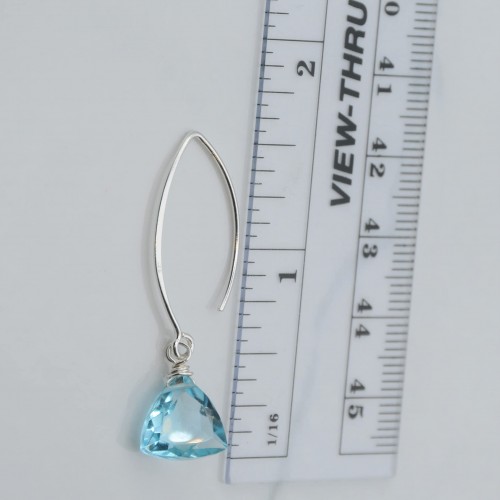 Handmade Dangle Earrings for Women – Aquamarine Blue Quartz Sterling Silver Earrings in Gift Box – Sparkly Blue Quartz Trillion – Lightweight Dangling Earrings – Trendy Long Dangly Drop Earrings