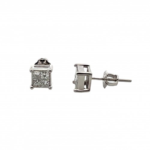 18kt white gold diamond earrings. The martini style earrings contain 2 round brilliant cut diamonds totaling 1.47cts. They have a clarity of VS2-SI1 and the color is I/J. The earrings have friction posts and backs
