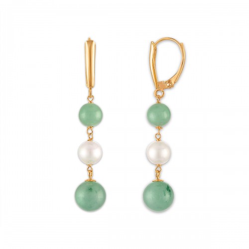 Jade and Fresh Water Pearl Drop and dangle Earrings in 14KT Yellow Gold