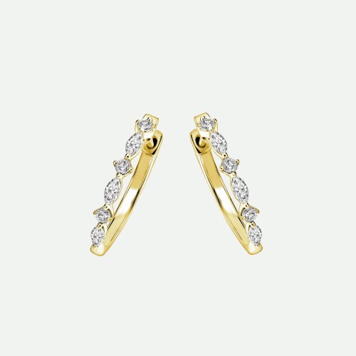 Our Julia earrings are elegantly crafted in 9 carat yellow gold and set with a row of claw set sparkling lab grown diamonds. These gold and diamond earrings – with a total lab grown diamond weight of 0.32ct – would make a stunning gift for a loved one or add the finishing touches to a wedding outfit.