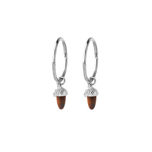 Delving into the depths of the forest, our iconic acorn was found, miniaturized and harvested with the rare delight of a tiger’s eye nut. True cast, this wooden deity intrinsic to Karen Walker iconography features a naturalistic in texture cap and mini leaf charm, all suspended from dainty 9 carat yellow gold hoops.