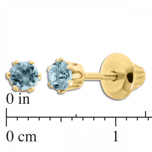 Kiddie Kraft 14KT Yellow Gold Round Aquamarine Birthstone Stud Earrings