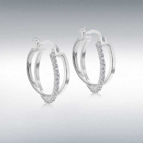 Ladies BOSS stainless steel huggies set with white crystals.