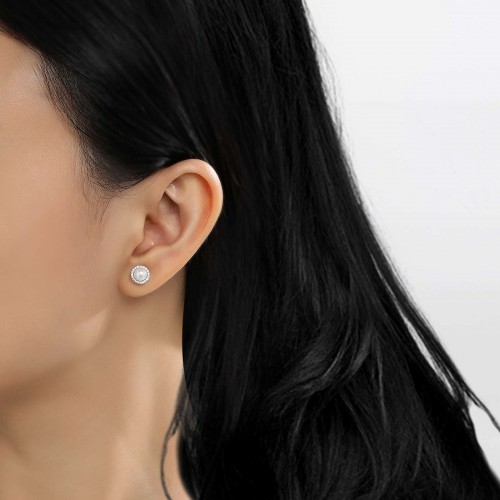 Elegant and sophisticated. These oversized cultured freshwater pearl halo earrings are set with Lafonn’s signature Lassaire simulated diamonds in sterling silver bonded with platinum.