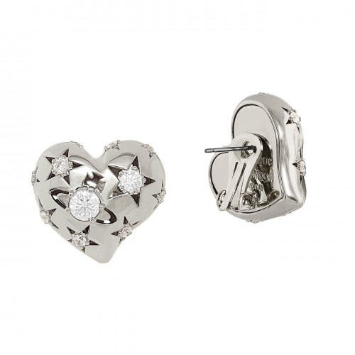 The Lee Clip Earrings from Vivienne Westwood feature a celestial pattern in cubic zirconia, adored across the asymmetric heart. The earrings are fastened with a clip to support the ear when wearing. Metal: Brass with platinum plating. Please note: These earrings are non-refundable. For hygiene reasons, we do not accept returns on earrings. Earring Dimensions: H 2.3cm x W 2.4cm x D 0.9cm (approx). Presented in official Vivienne Westwood packaging.