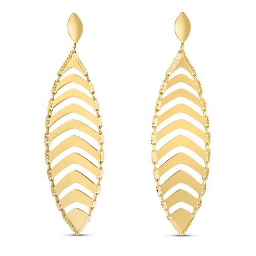These silver earrings feature the classic drama of long chain drops, punctuated by textured bars. Post earrings are 112 millimeters long, 5 millimeters wide, and are held in place by pushback clasps.