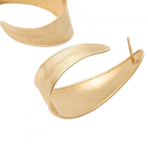 These elegant hoop earrings in 18k yellow gold are finely hand-engraved using an ancient Florentine technique. Irregular contours frame the face and create an amazingly elegant and radiant effect.