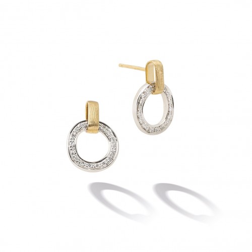 18K Yellow and White Gold dangle link earrings featuring .08cttw diamonds from the Marco Bicego Jaipur Link Collection.
