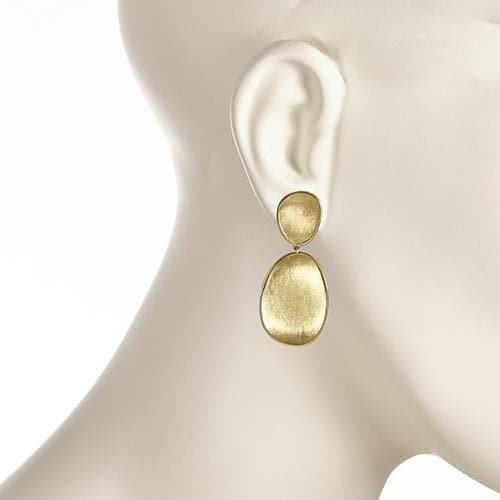 Inspired by the delicate shape of the Lunaria flower, these 18k yellow gold Lunaria Small Double Drop Earrings are hand hammered and hand engraved by Italian artisans.