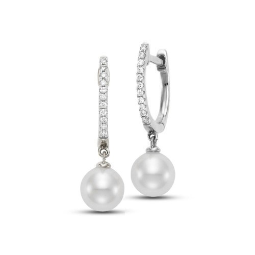 From our Mastoloni collection. This pair of pearl and diamond earrings feature stones that have been set in 14K white gold.