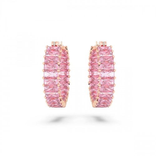 Give your casual styling an instant boost with these luscious hoop earrings from the Matrix family. The attractive colorway is uniquely eye-catching, thanks to the pairing of rose gold-tone plating and pink stones. Glittering and golden, these earrings are best worn with matching necklaces or bracelets – or give them as a charming gift.