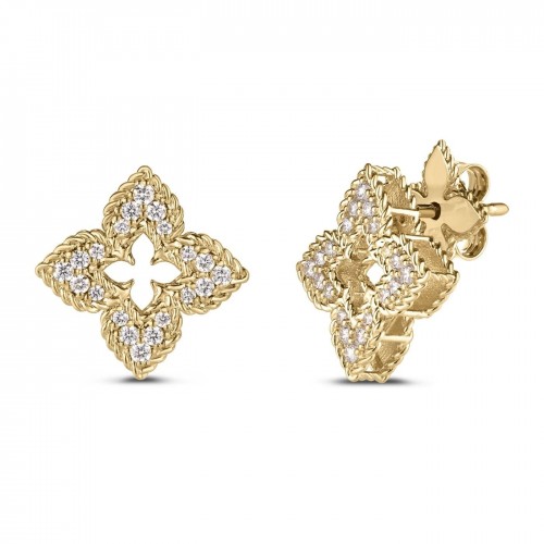 18K yellow gold Imperial Move small diamond earrings featuring 156 round brilliant cut diamonds weighing .70 ctw. Designed by Messika.
