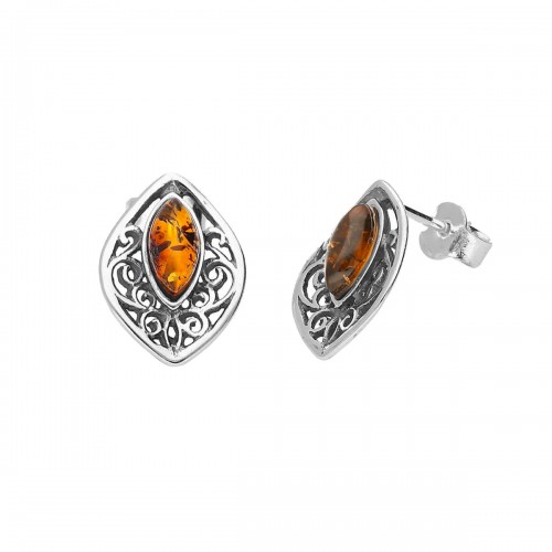 MILENA Earrings Silver and Amber Sun Stud