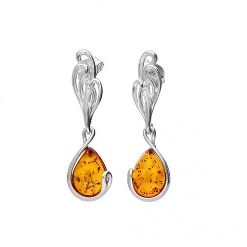 Elegant earrings made of a Sterling Silver with a marquise shaped amber stone.