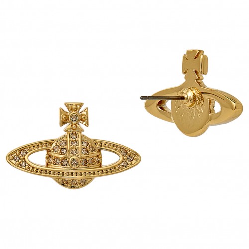 The Vivienne Westwood Mini Bas Relief Earrings are part of the designer’s classic collection using the iconic orb and Saturn ring as inspiration. With light gold topaz crystals set in gold plated tones, the earrings are perfect for adding a little bit of glamour to everyday outfits, or for a special occasion. Measuring approximately 15mm from top to bottom and 25mm across, the Vivienne Westwood Mini Bas Relief Earrings are finished with a post and butterfly fitting. Metal: Brass. Please Note: These earrings are non-refundable. For hygiene reasons, we do not accept returns on earrings. Presented in official Vivienne Westwood packaging.