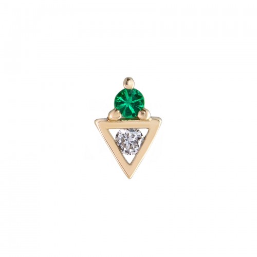 The dainty Mini Claw Baguette Emerald Stud Earring from Metier By Tomfoolery makes a perfect addition to any ear stack. Emerald is a vibrant stone which shines beautifully in the sunlight, this gemstone is thought to bring peace and hope to the wearer, it is also the birthstone for May. Set in a 9ct yellow gold frame, this baguette cut stud earring features a claw set emerald gemstone. Designed to be self-styled and interchangeable for every day, the earring is sold as a single. Baguette Cut: 2 x 4mm. Scew back post length: 6.5mm. Metal: 9ct yellow gold. Presented in official Metier packaging.