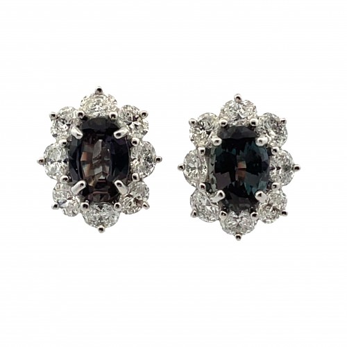 Platinum and 18KT yellow gold pink sapphire and diamond earrings with omega backs