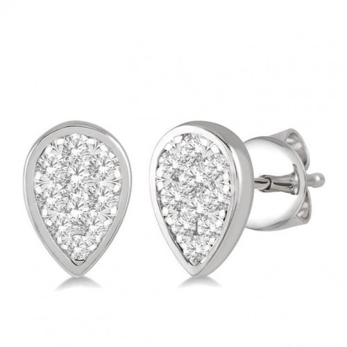 These Sapphire and diamond earrings add a touch of glam to your ensemble. Crafted in luminous 10 karat white gold these elegant pair of earrings features oval cut center stone Sapphire in prong set bordered with a frame of dazzling 38 prong set round cut diamonds along with the front edge in intertwined design. These treats close with secure clasp. Total diamond weight is 1/6 ctw and each oval cut Sapphire measures 5×3 MM.