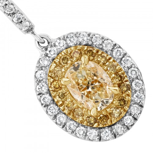 Oval Shape Natural Fancy Yellow Diamond & Halo Earrings